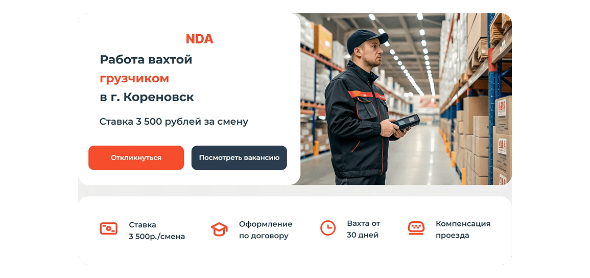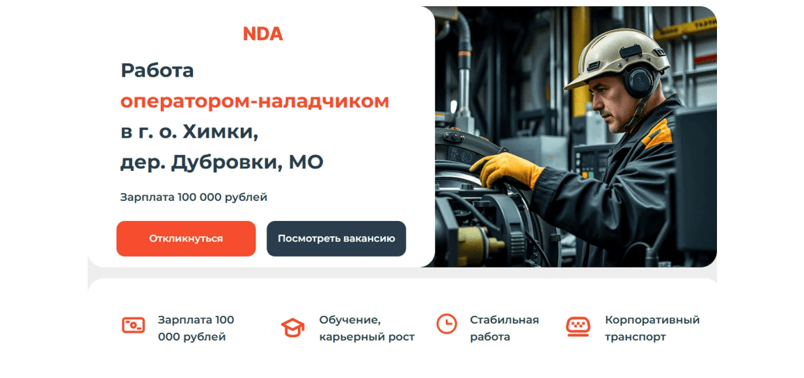 Каждая вакансия получала уникальную посадочную страницу, созданную по универсальному шаблону. Эти страницы адаптировались под разные вакансии с минимальными изменениями. Такой подход позволил быстро вносить изменения в контент (например, изменять информацию о зарплате, условиях работы) без необходимости разрабатывать каждую страницу с нуля.