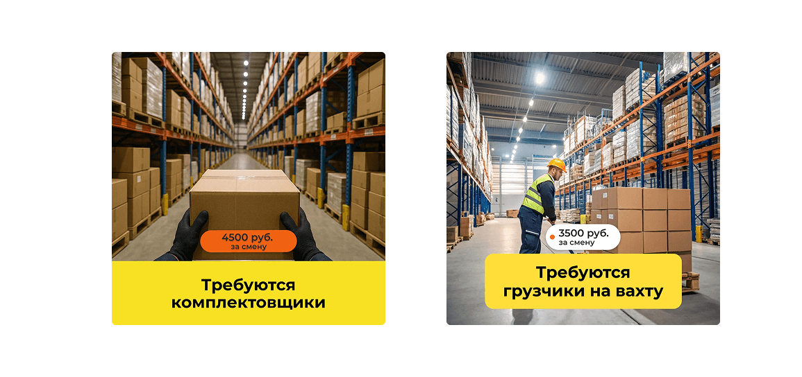 Использование нейросетей существенно ускоряло процесс создания креативов для множества вакансий, особенно учитывая высокую частоту обновлений. Мы могли за короткий срок генерировать несколько вариантов изображений под каждую позицию, что позволяло быстро реагировать на изменения.
