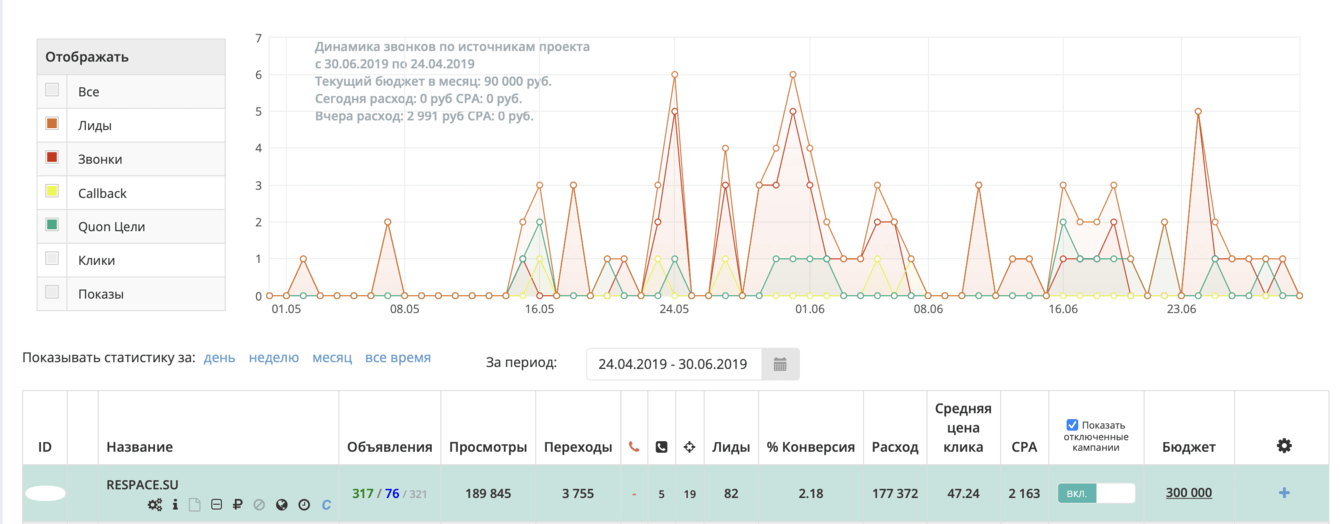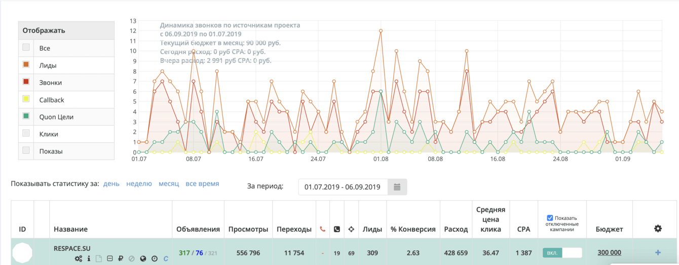 В течение 2 месяцев система QUON, в которой были настроены рекламные кампании и куда передавались данные о звонках и заказах, собирала информацию о конверсионных кампаниях и работающих в этих кампаниях запросах, после чего в имеющихся рекламных кампаниях были сделаны акценты на ключевые слова, приносящие больше всего лидов в рамках заданного СРА.