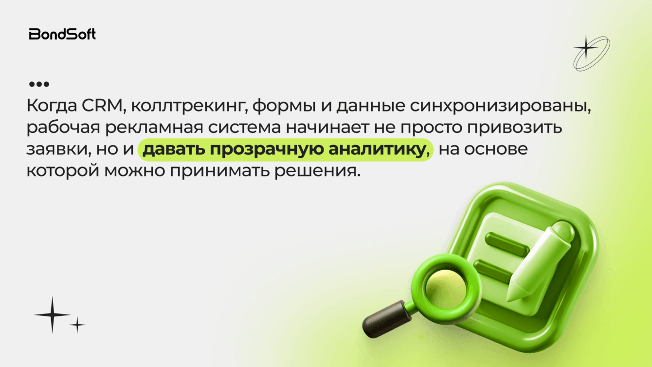 - настроить аналитику и интеграцию рекламы с CRM и коллтрекингом.