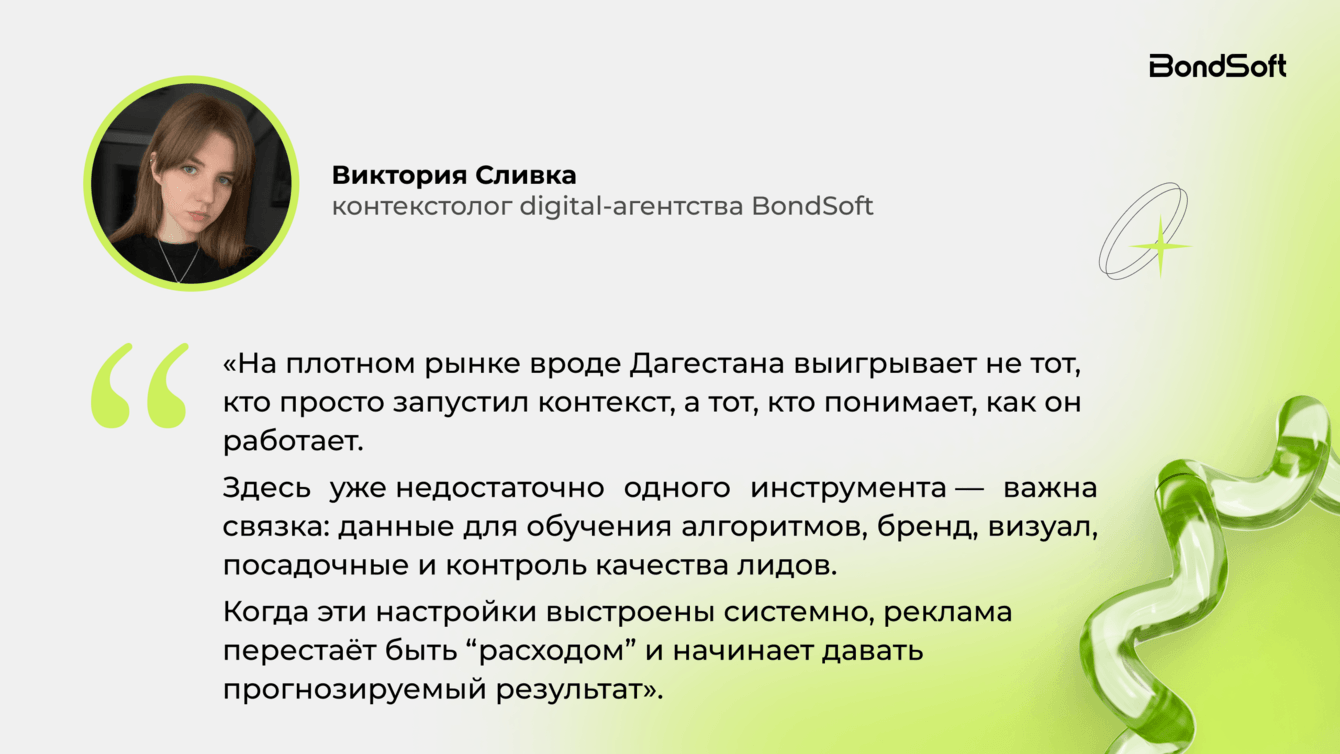 Важно подытожить: это не разовая история для одного проекта. Это отражение того, как сегодня работает рынок. Контекст в Дагестане — уже не тест и не эксперимент, а полноценный канал продаж, где стоимость реального покупателя определяется качеством настройки, аналитикой и умением не терять клиента на каждом этапе воронки.