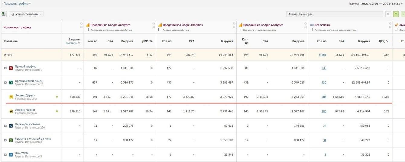 Первые результаты: Сначала мы запускали только те направления и типы кампаний, в которых были уверены. В августе начинали с небольшого бюджета, в сентябре его удвоили. Далее перешли к следующему этапу - внедрение и тестирование рекламных кампаний для менее эффективных категорий и разделов. Ниже представлены скриншоты за период октябрь-декабрь 2021 года.