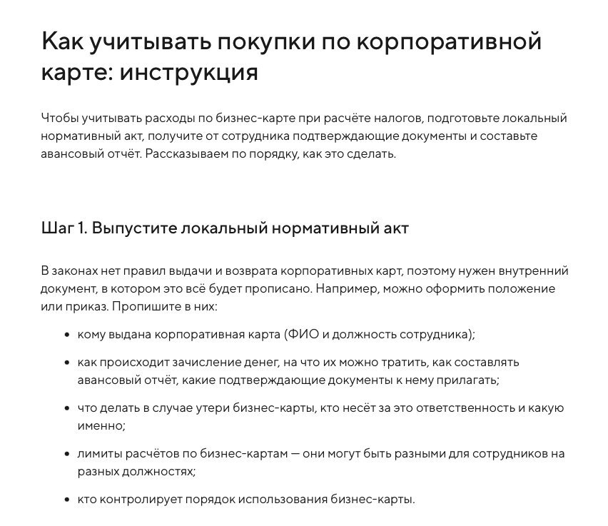 Рассказали про расходы по бизнес-карте. Эта статья важна для предпринимателей и бухгалтеров, которым нужно правильно учитывать траты по корпоративной карте, чтобы избежать проблем с налоговой.
