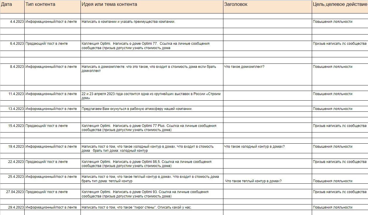 После этого началось формирование контент-плана. Вот как он выглядит: