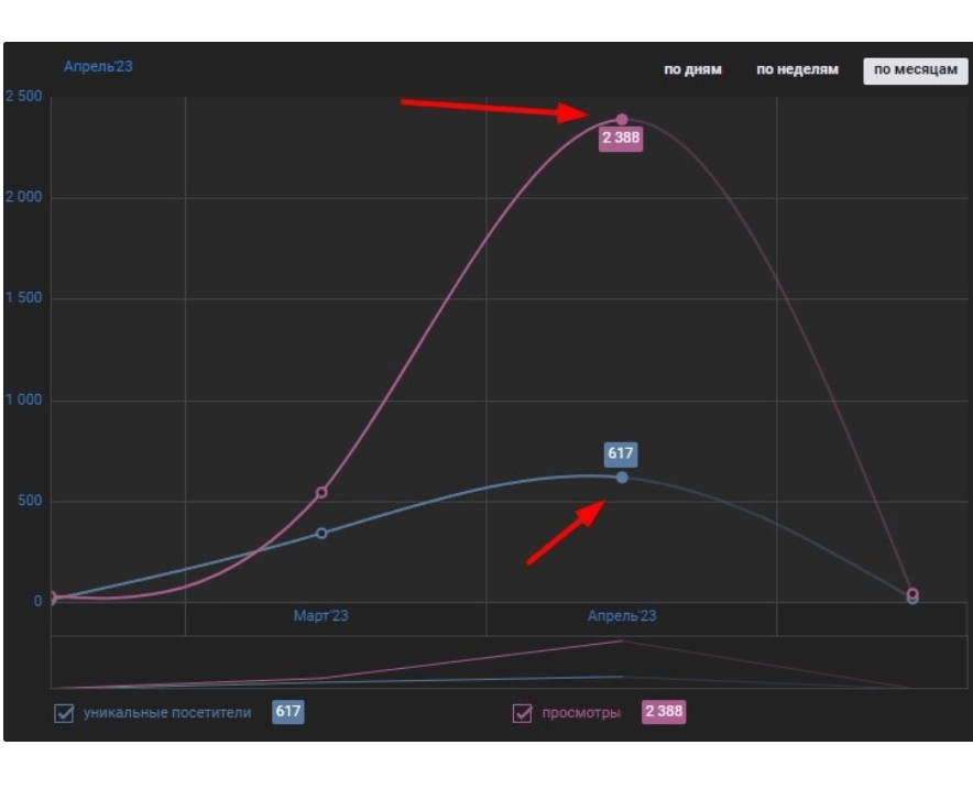 По уникальным посетителям прошлого месяца мы видим, что в апреле выросли просмотры. Прирост составил на 340.59%