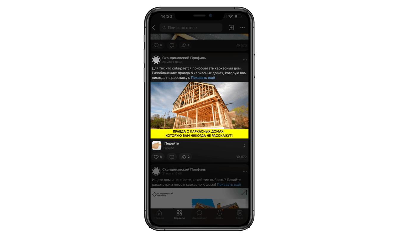 Мы поставили перед собой цель направлять пользователей в личные сообщения сообщества и для этого написали статью под названием "Правда о каркасных домах, которую вам никогда не расскажут".