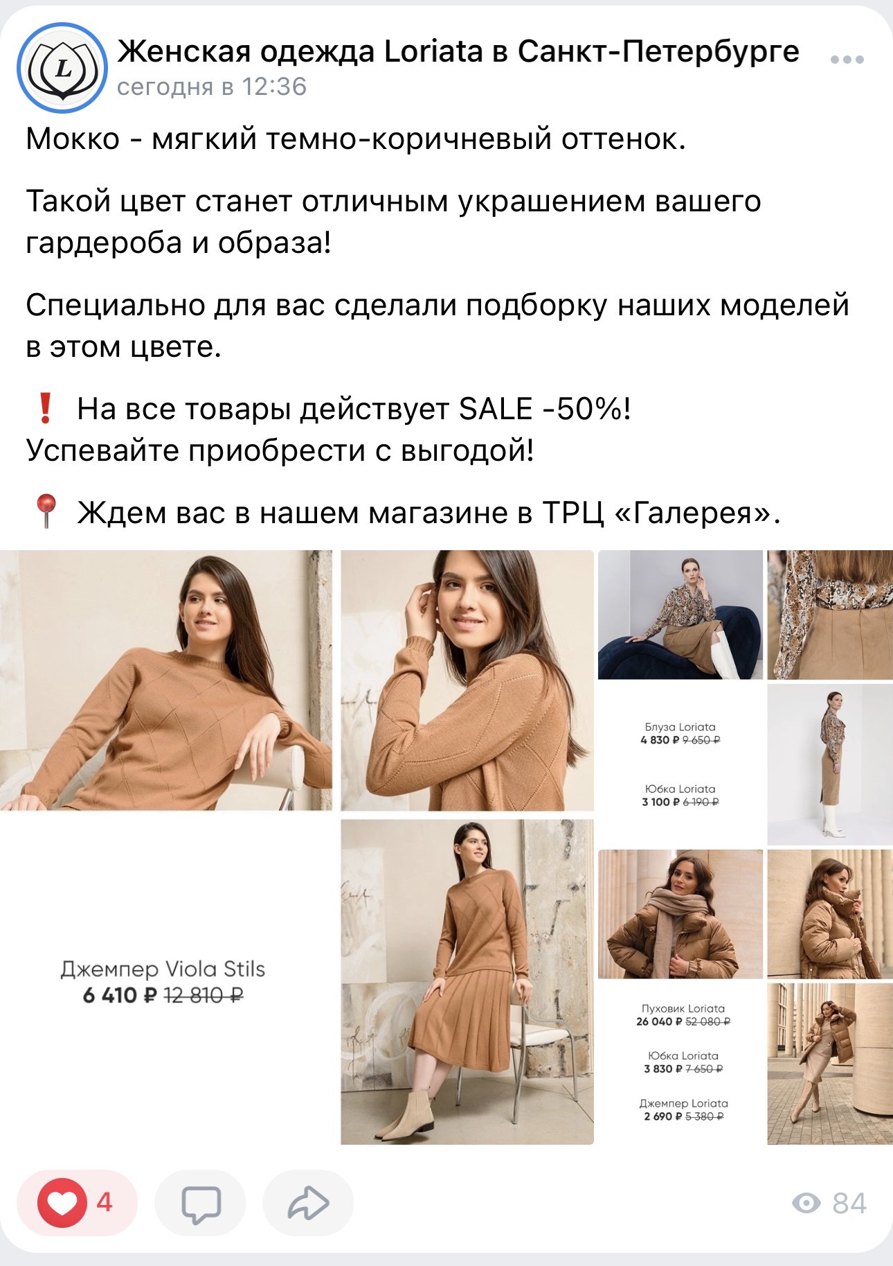 Основной задачей было - максимальное информирование и знакомство целевой аудитории (женщины 35+) о магазине, ассортименте, преимуществах моделей.