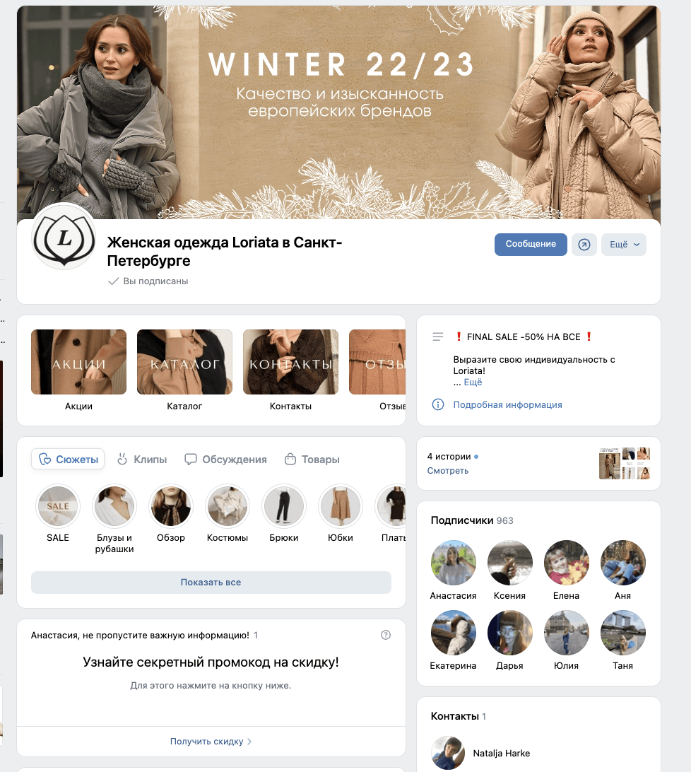 Клиент: мультибрендовый магазин женской одежды в г.Санкт-Петербург.