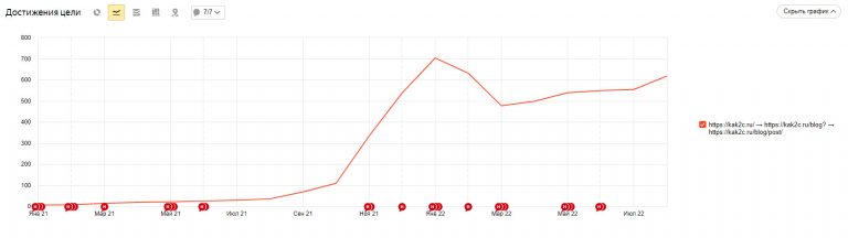 5. Отслеживаем аналитику и корректируем стратегию, делая упор на самые эффективные тематики. В августе 2021 мы начали усиленно прорабатывать запросы, связанные с маркетплейсами. Результат появился сразу: резко пошел рост трафика и лидов из блога.