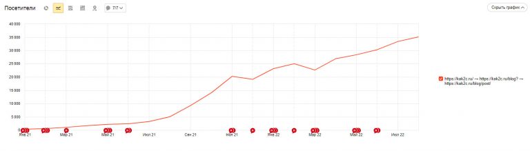 Вот как увеличился трафик на сайте после начала комплексной работы (с января 2021-го года по 31 августа 2022-го). Трафик вырос в 35 раз - практически с нуля до 35 154 посетителей в месяц.