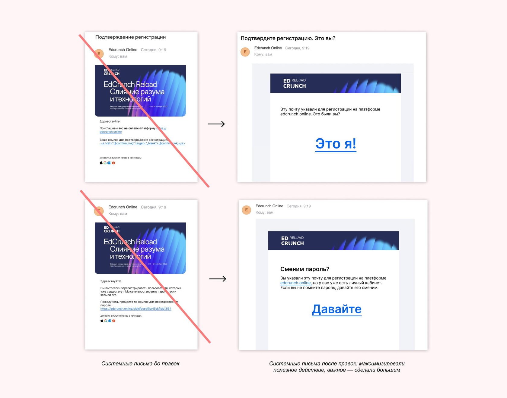 Системные письма — это автоматические письма, которые получает пользователь после оформления билета или регистрации на сайте. Мы сделали их максимально простыми, понятными и человечными. И об этом есть отдельный кейс.