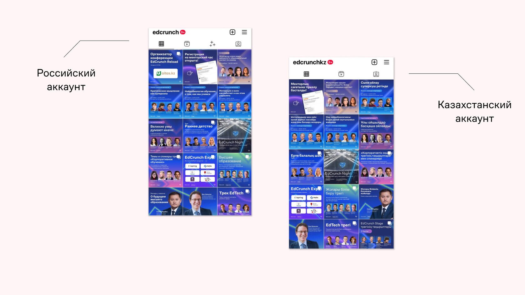 Когда мы пришли в проект, у конференции было 2 аккаунта Инстаграма: один на русском языке с 10,6 тыс подписчиков, а второй — на казахском с 9 тыс подписчиков. Казахский язык мы не знали, а значит нужно было принимать решение: искать переводчика или делать совместные посты только на русском.