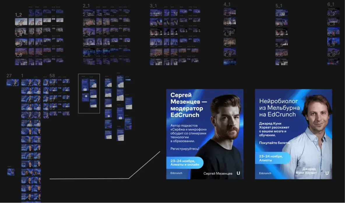 Для таргета мы продумали ролики в TikTok и визуалы для РСЯ и КМС. А чтобы персонализировать рекламные объявления, мы разделили всю аудиторию на сегменты: родители, бизнесмены, учителя и преподаватели, директора и руководители. Дизайнер был со стороны заказчика.