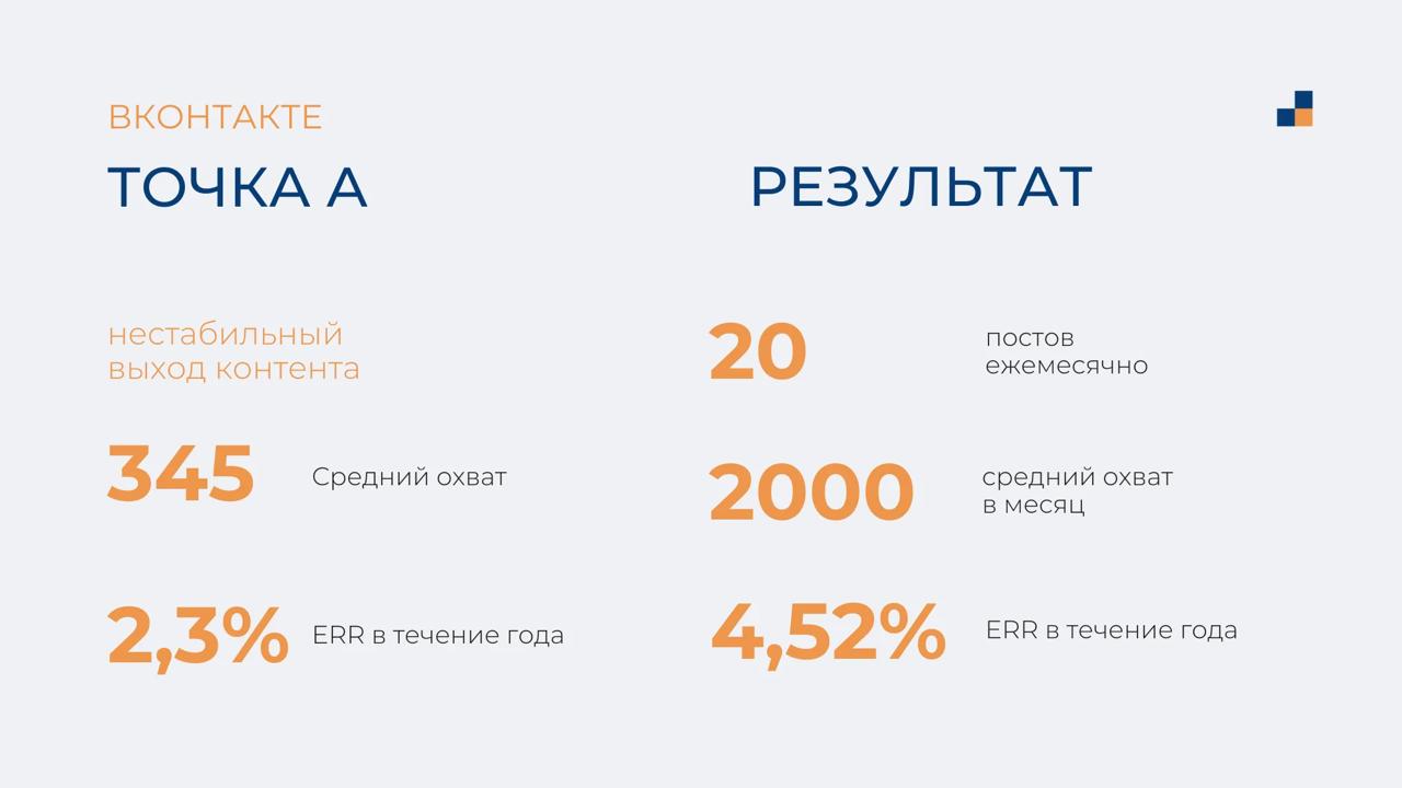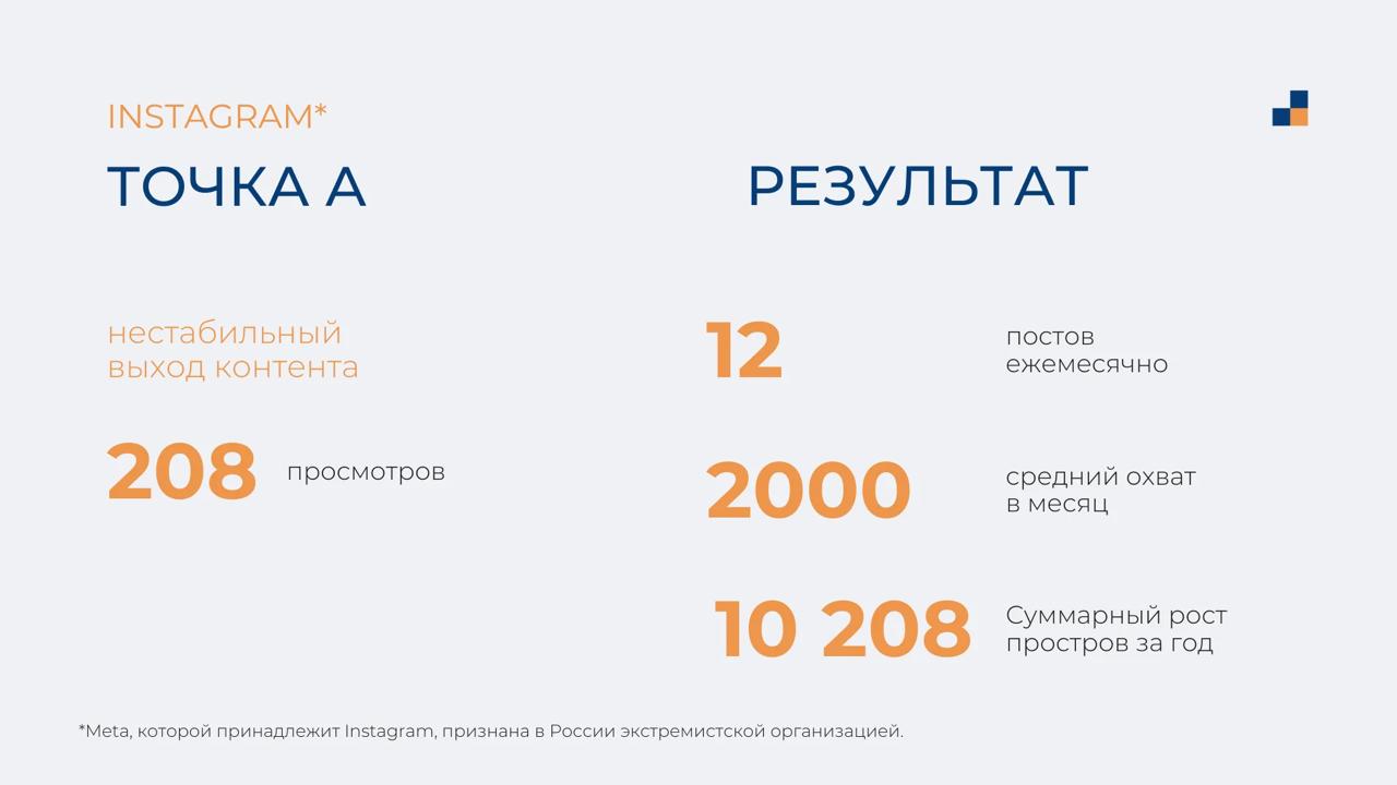 На втором плане оставили ВКонтакте и запрещенную соцсеть, в которые дублировали контент (кросспостинг), и адаптировали его под конкретный функционал каждой соцсети.