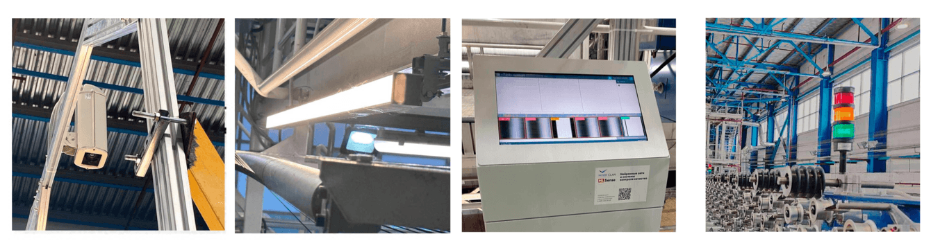Волокно движется по конвейеру мимо установленных камер, которые с высокой частотой (ок. 4000 кадров в секунду) делают снимки размером 4000рх на 1рх. Затем эти “линии” изображений собираются в единое фото, которое анализирует система с машинным зрением ML Sense, развернута на отдельном сервере.