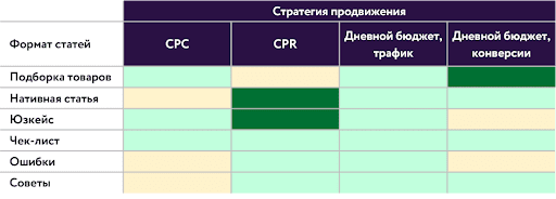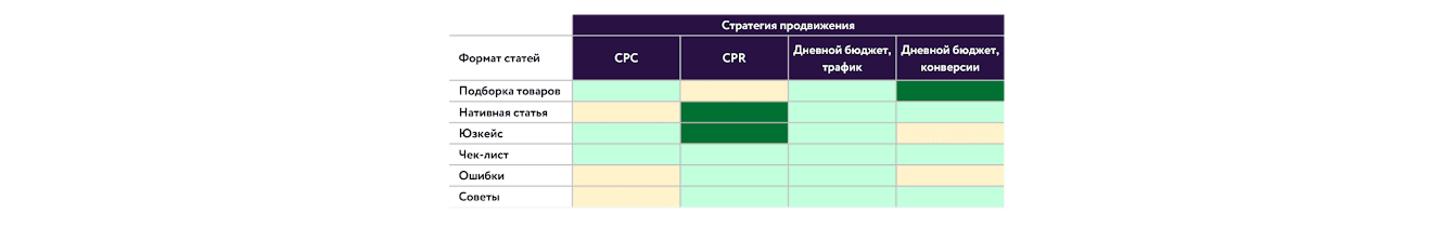 В среднем по Fashion-тематике получаем следующие сочетания формата статьи и стратегии: