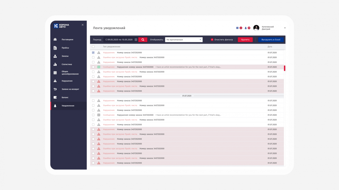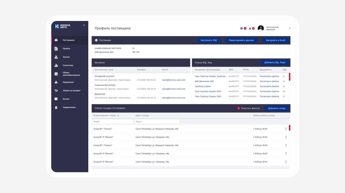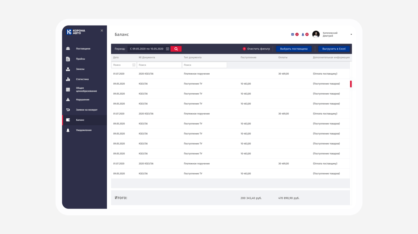 Автоматизировали загрузку документов, прайсов, их настройки. Для каждого клиента заводится аккаунт, в который загружаются его заказы и прайсы. В личном аккаунте реализовали возможность отслеживать баланс, поступления и т.д.