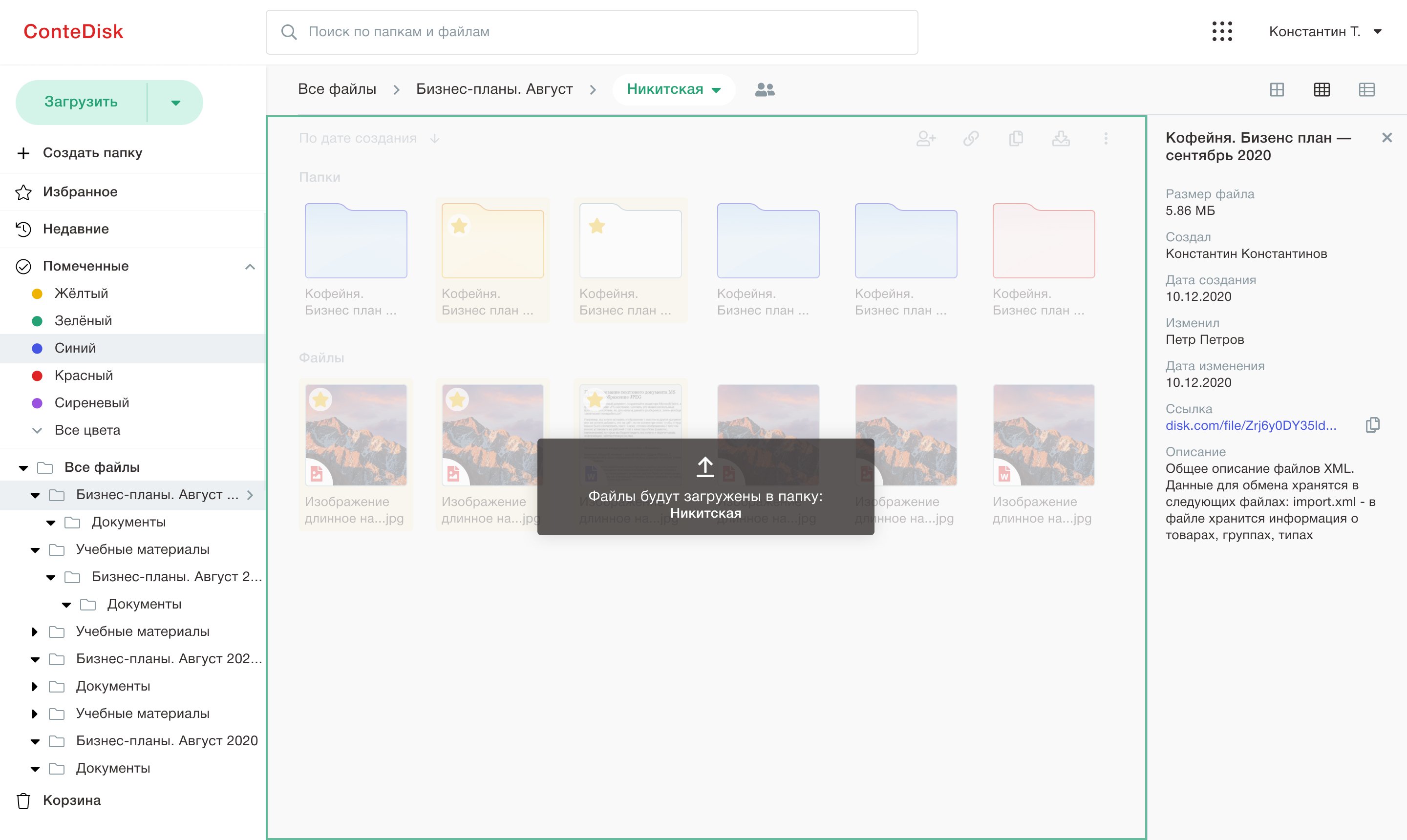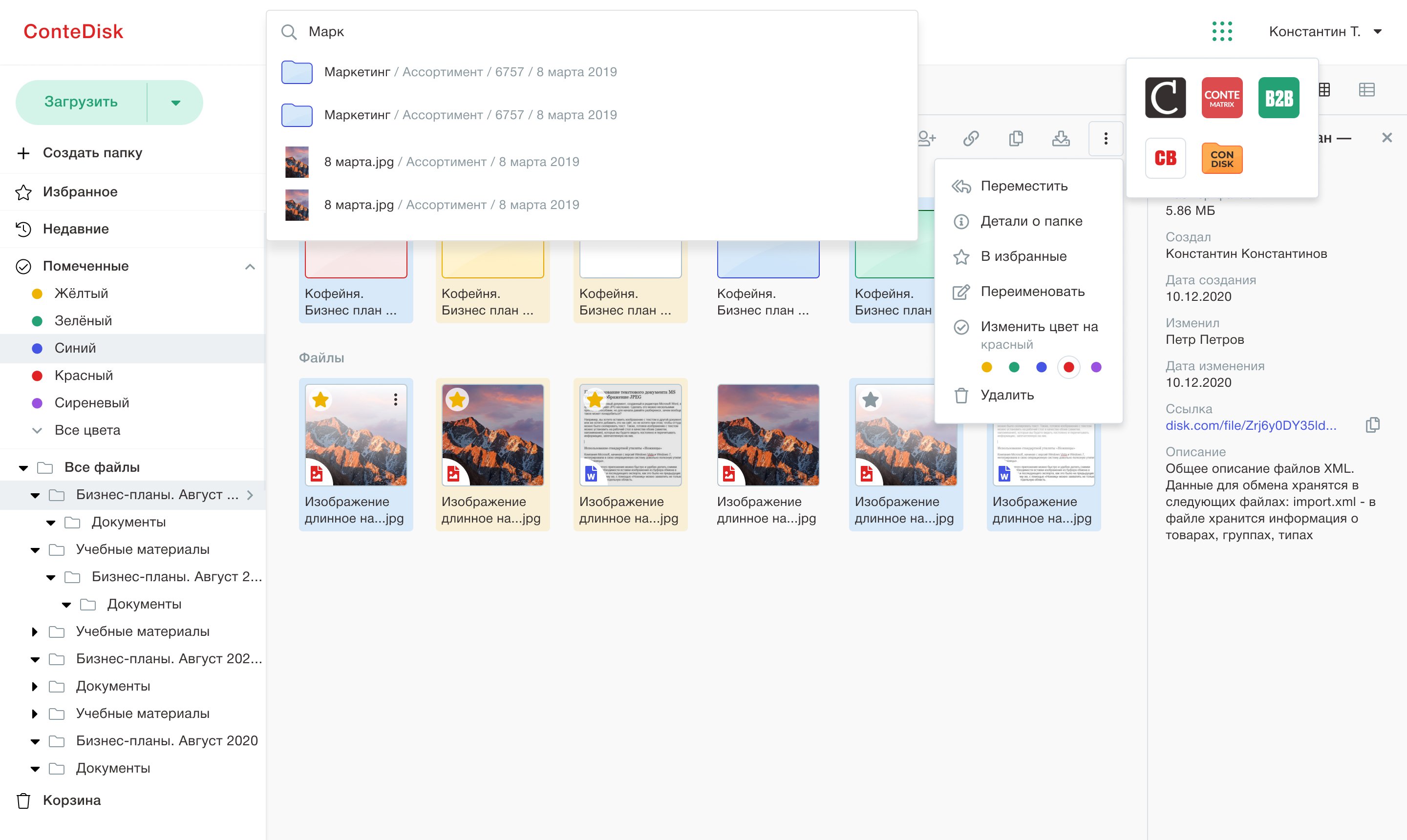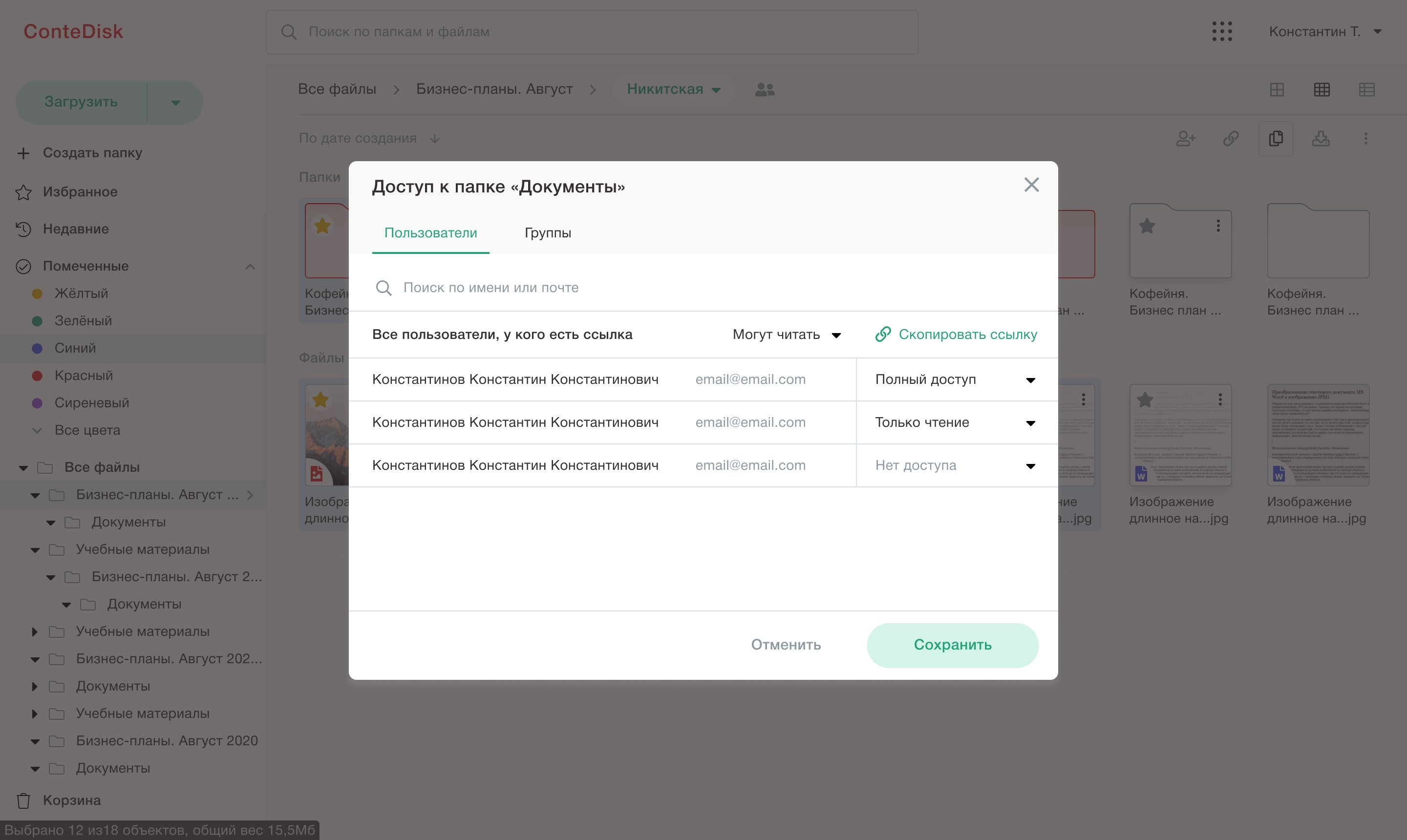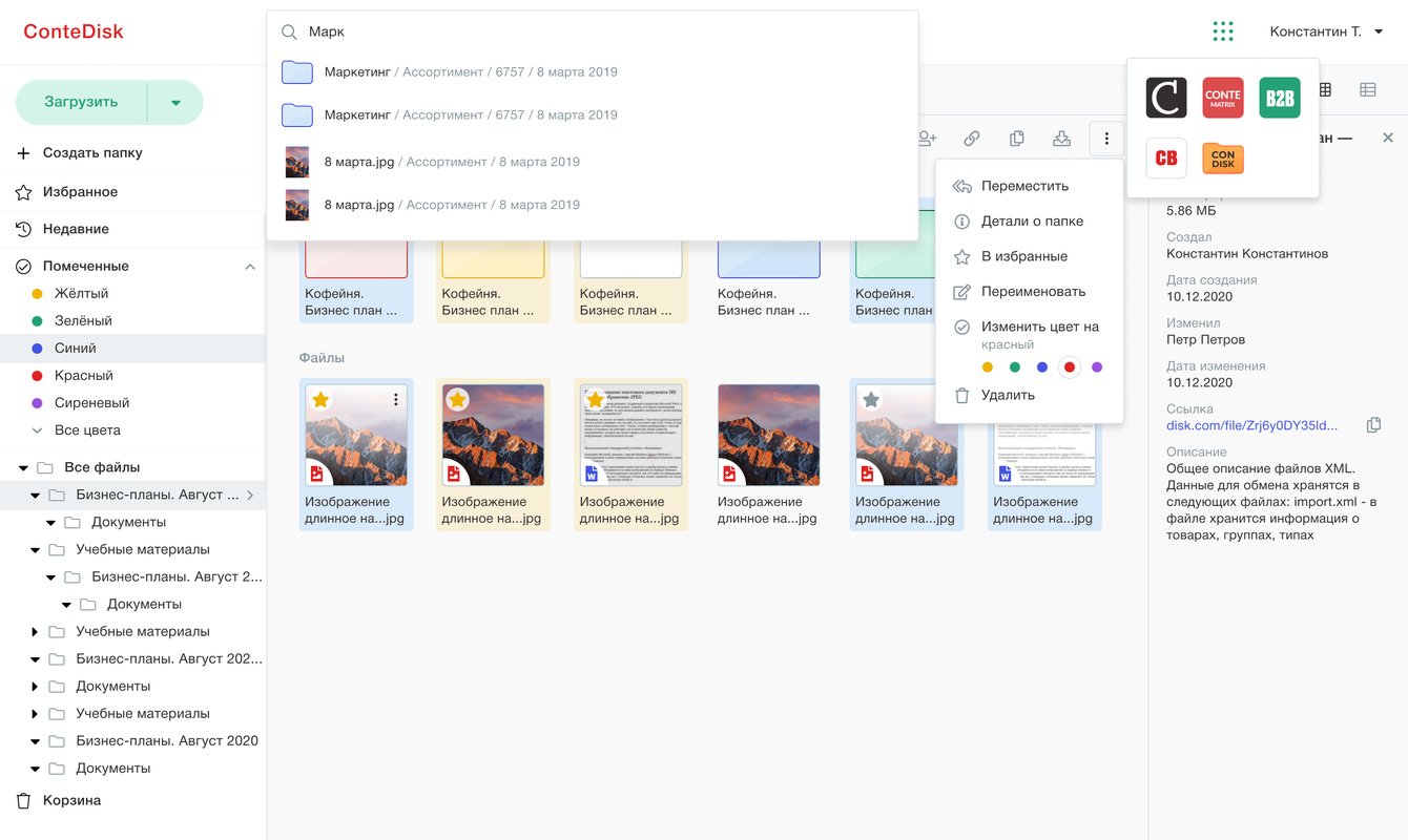 ConteDisk представляет из себя веб-приложение, похожее на привычные сервисы облачного хранения файлов – Google Drive и Яндекс.Диск. Помимо хранения файлов имеется собственная система учетных записей, пользовательских групп, возможность гибкого контроля доступа.