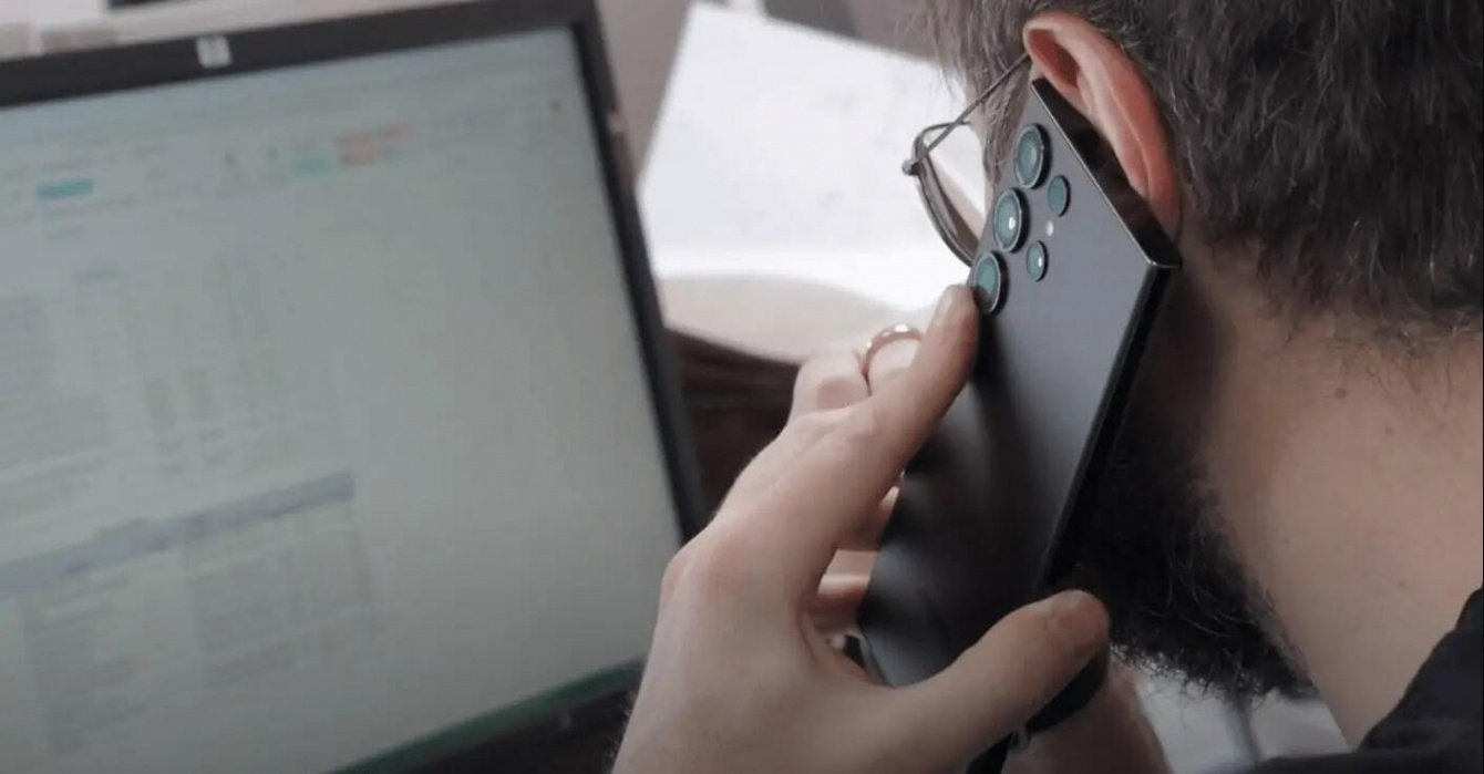 Пока раскладывали оборудование, удалось запечатлеть пару кадров с процессом разговора по телефону.