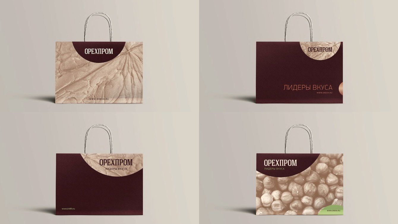 «ОрехПром» работает с сегментами B2B и B2C, но бизнес-направление является опорным для компании и, соответственно, ее фирменного стиля. 50% товарооборота занимает фундук, но, помимо него, «ОрехПром» перерабатывает другие орехи, производит начинки для кондитерских и молочных изделий.