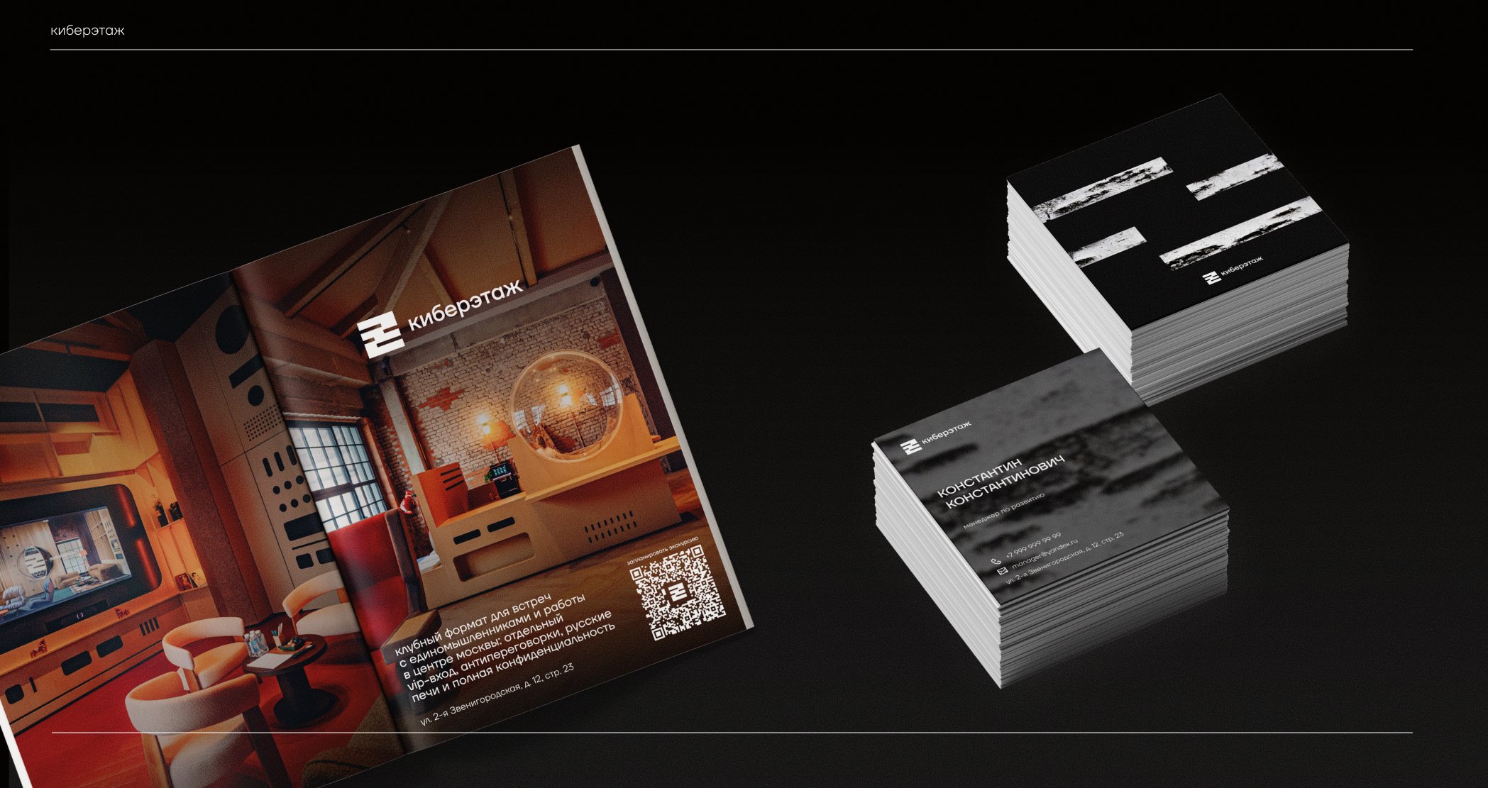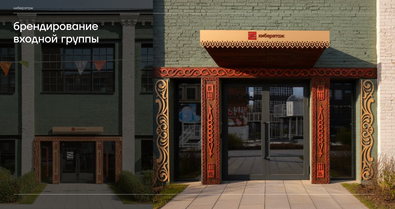 Мы создали целостную визуальную систему, которая не только раскрывает идею Киберэтажа, но и становится частью пользовательского опыта, помогая гостям прочувствовать пространство, погрузиться в его атмосферу и считать заложенные смыслы. Айдентика усиливает позиционирование проекта и формирует узнаваемый образ, в котором культурные традиции находят новое воплощение и прокладывают дорогу в технологичное будущее.