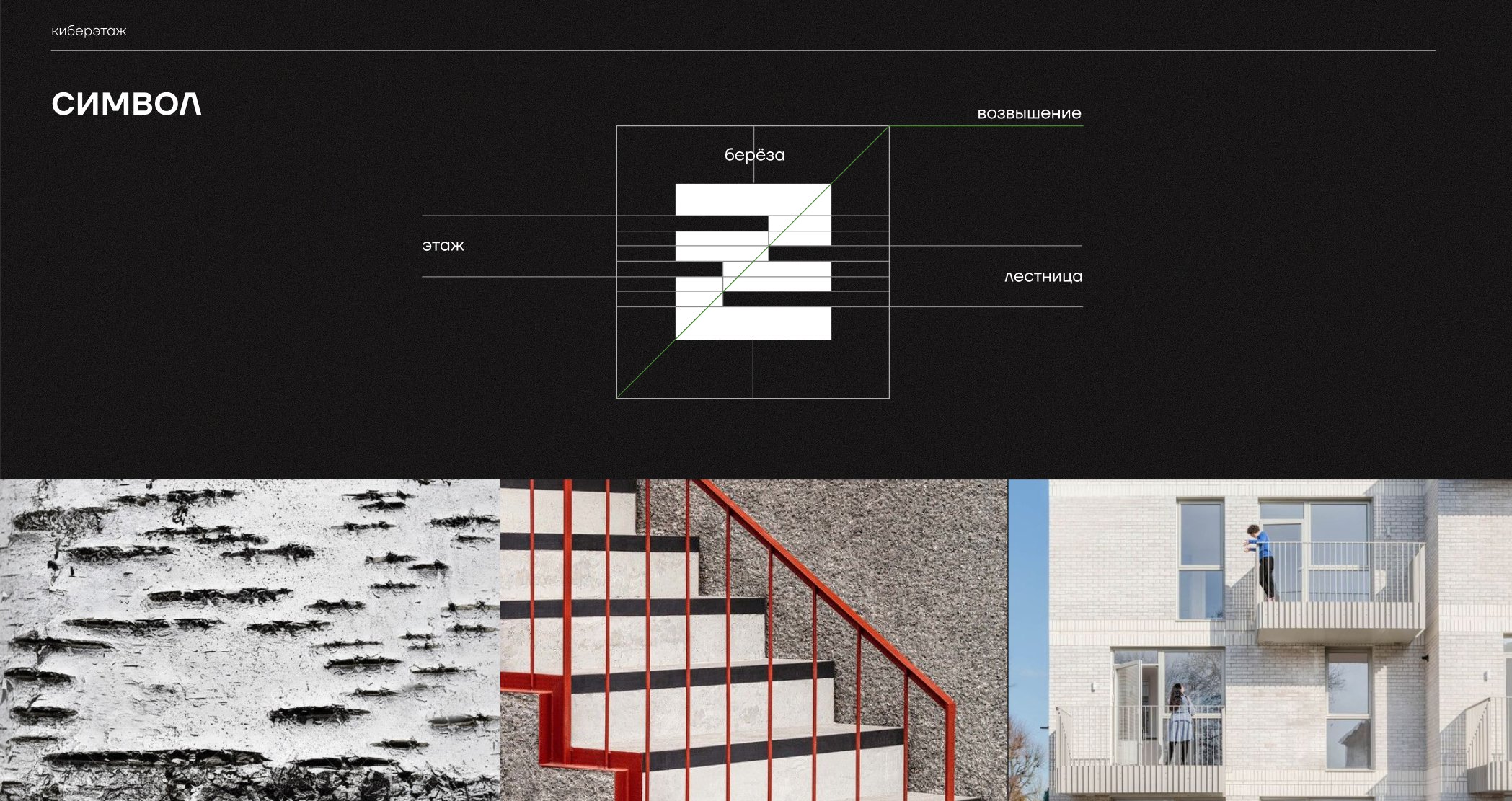 Логотип представляет собой современную цифровую интерпретацию узора берёзовой коры. повторяющиеся элементы паттерна символизируют этажность и адаптивность, отражая гибкую архитектуру пространства, способного трансформироваться под любые задачи.