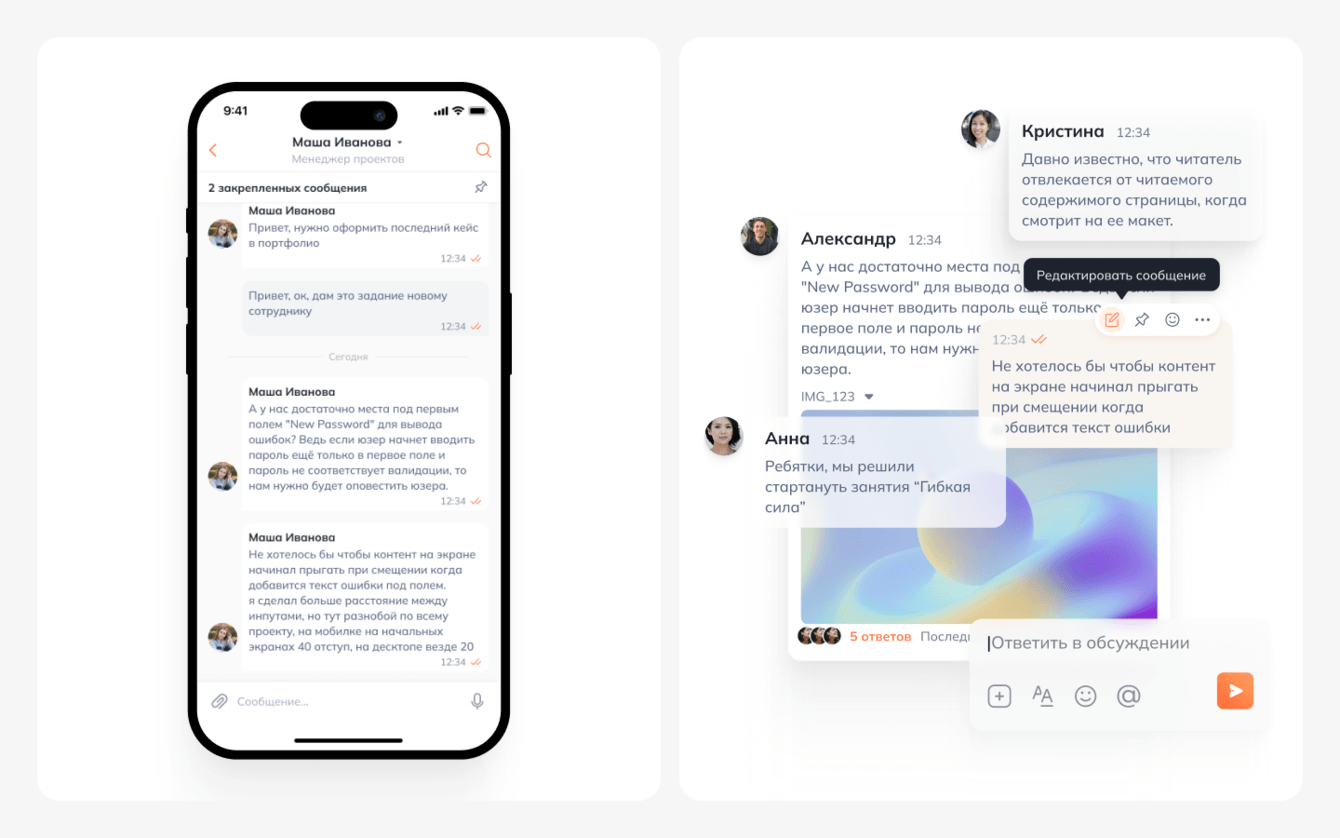 - разработка корпоративного мессенджера для эффективной рабочей коммуникации без лишнего информационного шума с высоким уровнем безопасности в привычном и понятном интерфейсе приложения;