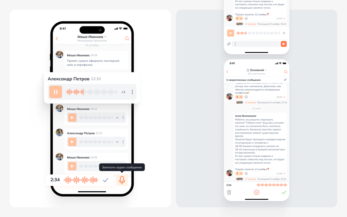 1. Полностью собственная реализация корпоративного мессенджера, без использования сторонних SDK и платформ.