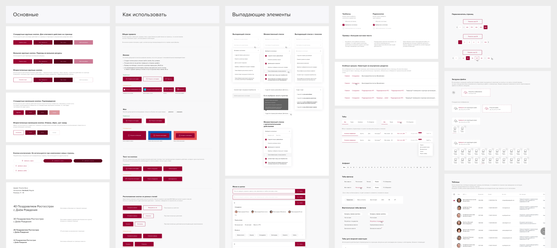 Чтобы команда могла развивать портал самостоятельно, мы подготовили подробный гайдлайн с описанием типографики, отступов, цветов и UI-элементов.