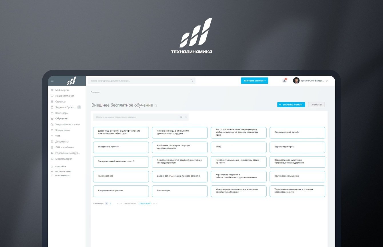 Разработали удобные разделы для обучения, где каждый сотрудник может подобрать для себя подходящие курсы, подать заявку на обучение и посмотреть расписание планируемых курсов в календаре. В интерфейсе портала предусмотрели возможность добавления дополнительных курсов.