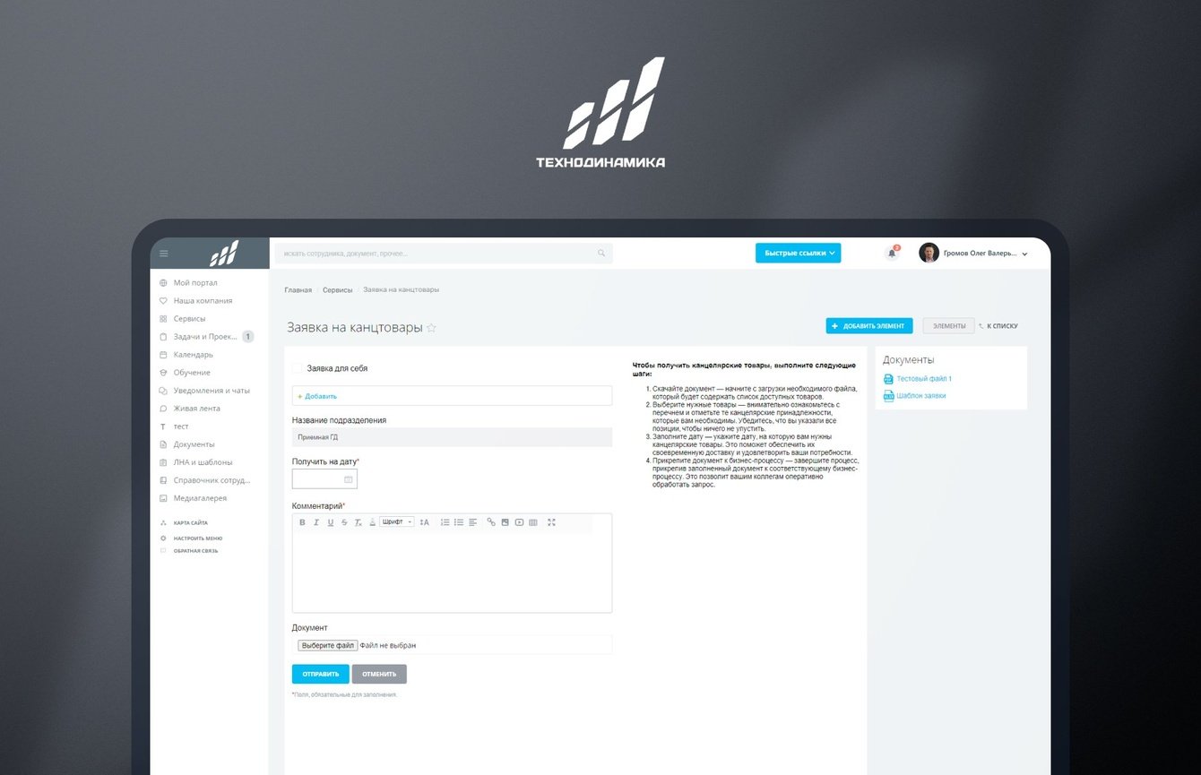 — Обеспечен централизованный доступ к подаче заявок на канцтовары, отпуска, больничные, согласования.