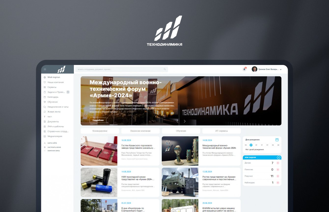 В рамках разработки корпоративного портала для холдинга мы внедрили ряд ключевых функциональных возможностей, направленных на оптимизацию работы сотрудников и улучшение внутренней коммуникации. Ниже приведены основные интеграции и решения: