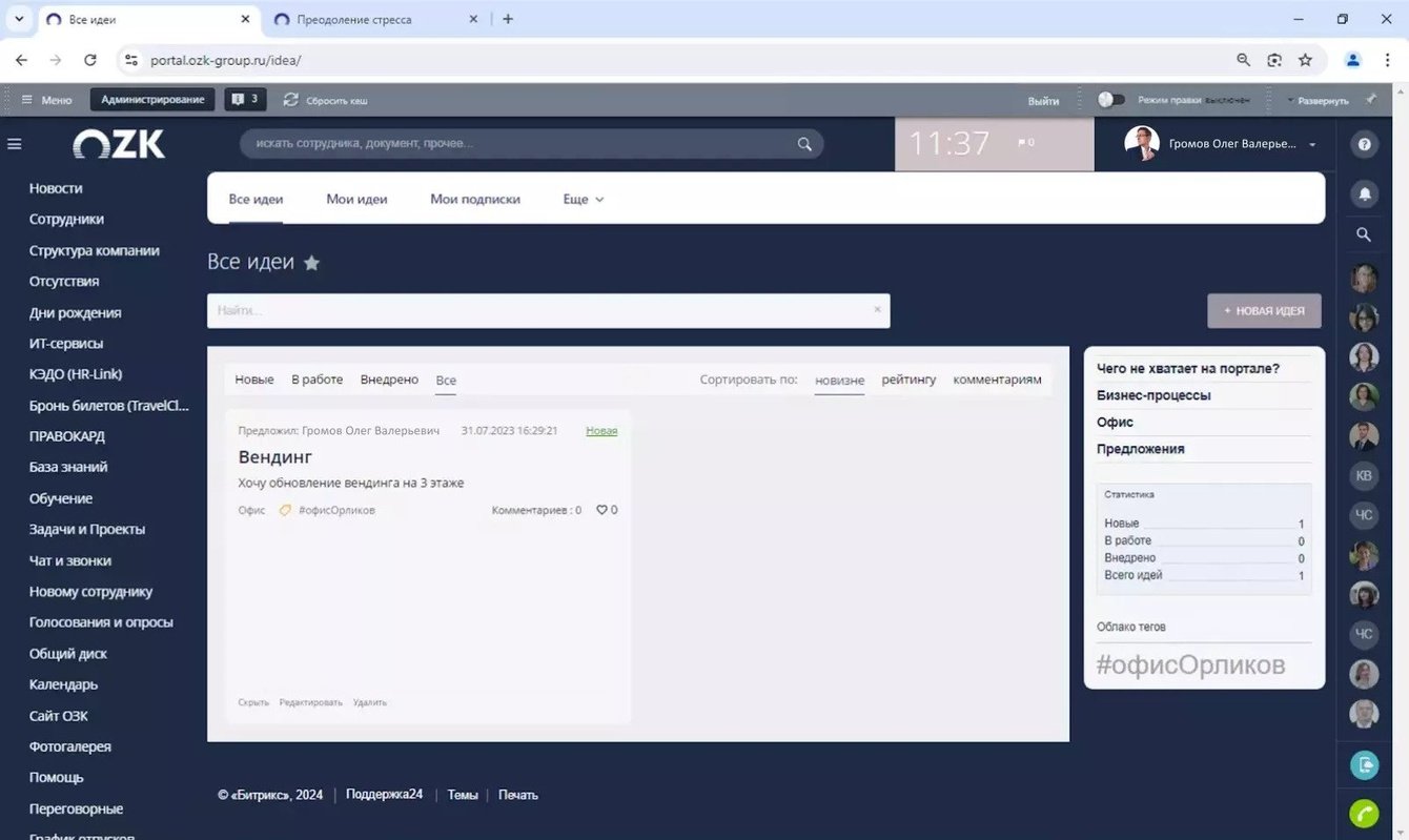 В левом меню есть статистика предложений новых идей, а также фильтры по категориям идей.