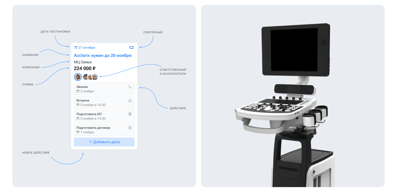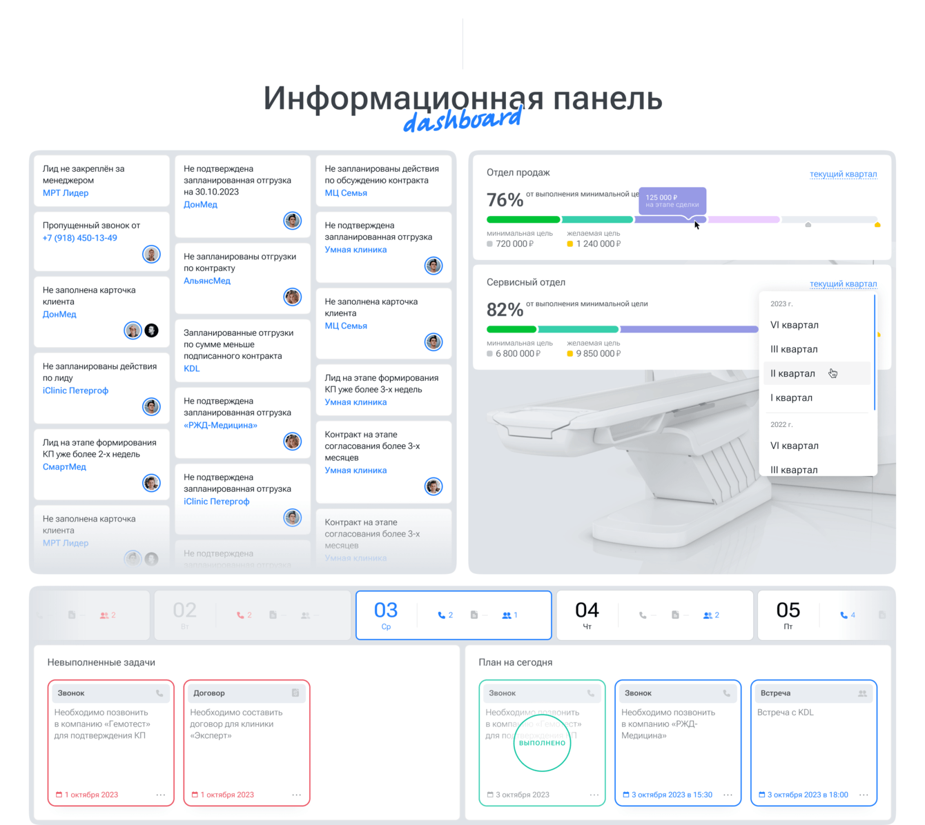 Организации, занимающейся поставками и обслуживанием профессионального медицинского оборудования потребовался корпоративный портал с CRM, созданный под индивидуальные требования и особенности системы мотивации.