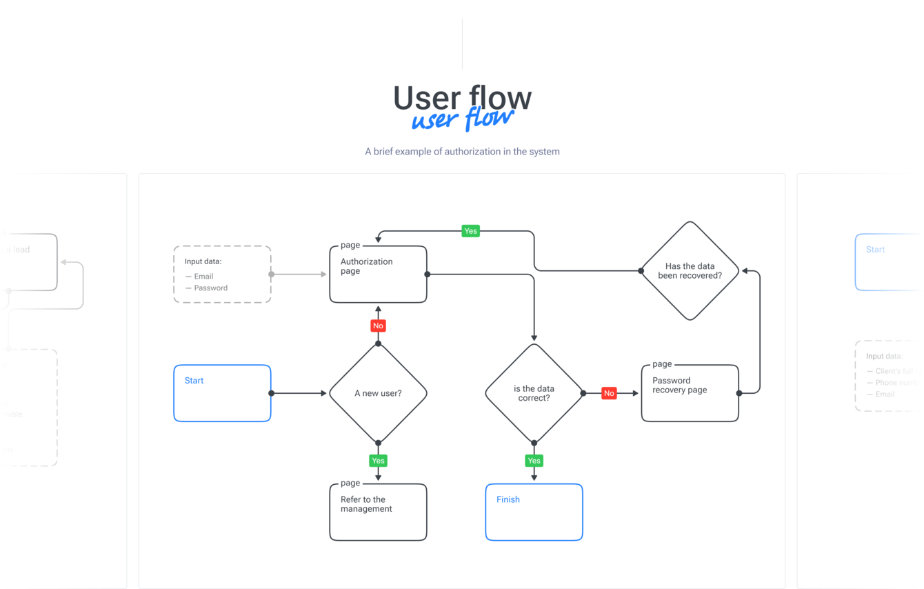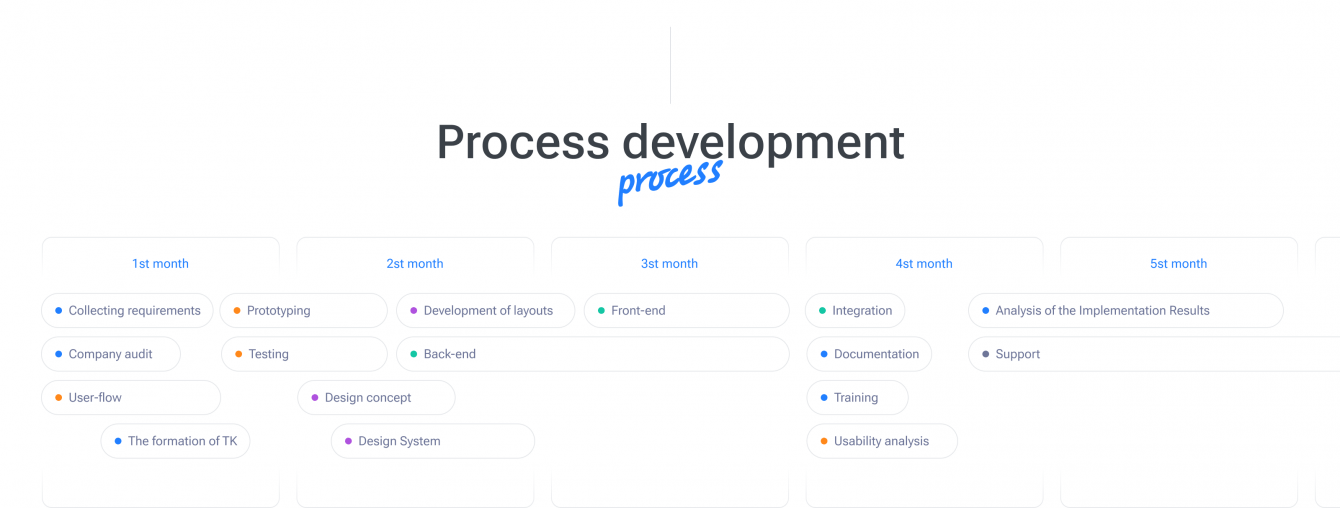 Самым главным до начала работ было убедиться в том, что клиенту действительно не подходят готовые решения, наподобие Битрикс24, и что мы точно с клиентом правильно понимаем друг друга. В сфере разработки уникальных программных продуктов именно одинаковое понимание всех деталей — является сложнейшей задачей. При разработки сайта почти всегда можно посмотреть примеры, которые хотя бы частично обладают нужными функциями или похожим дизайном, все люди ежедневно пользуются сайтами и примерно представляют что на них бывает и им не нужно объяснять устройство, например, корзины или онлайн-оплаты. А в подобных проектах почти нет примеров, по многим функциям примеров вообще не существует, да и нет продуктов, которыми и мы, и клиент пользовались бы хотя бы 1 раз в месяц.