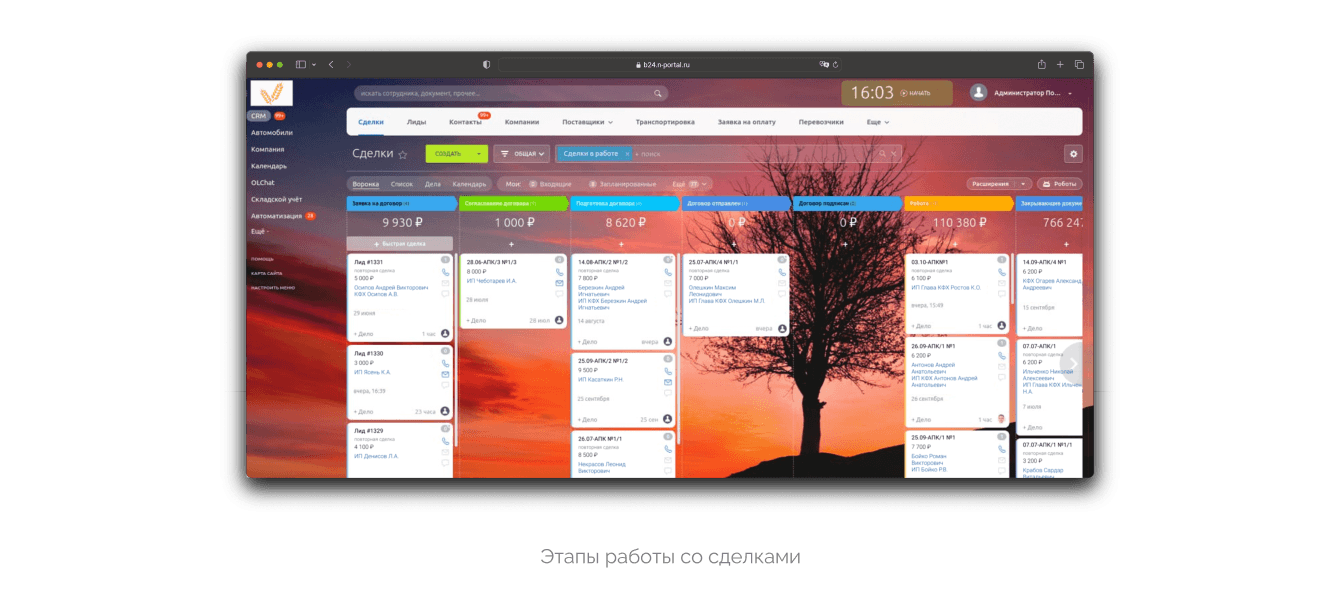 В качестве платформы для корпоративного портала был выбран Битрикс24. Это ПО представляет все необходимые для реализации задачи инструменты – распределение ролей, движение сделок, доставка уведомлений, изменение полей сделки.