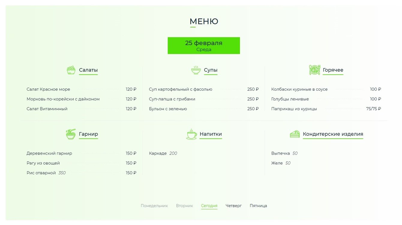 - Меню столовой