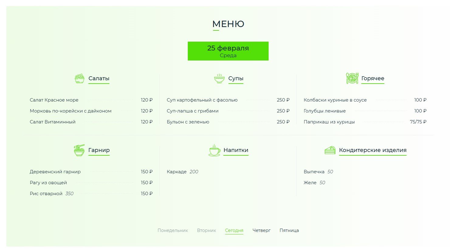 - Меню столовой