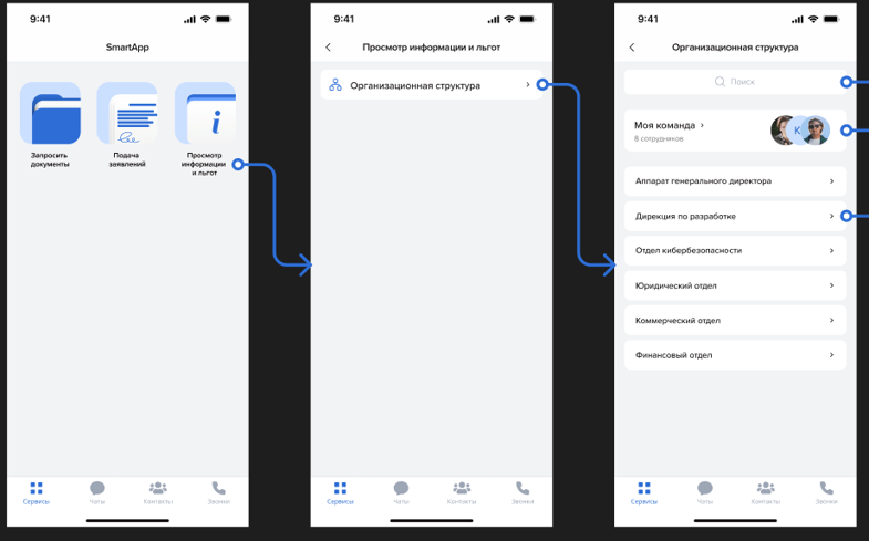 • Управление командой: Доступ к календарю отпусков и отсутствий подразделения, инструменты для онбординга новых сотрудников.