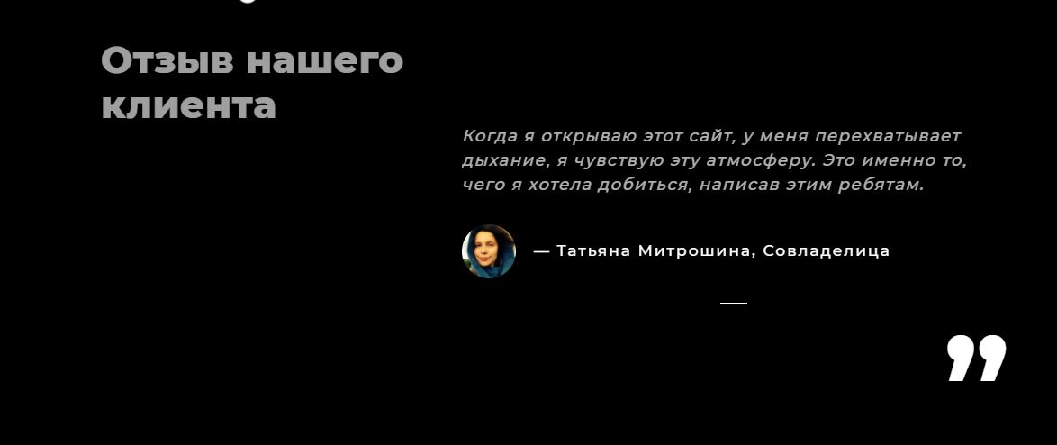 Когда я открываю этот сайт, у меня перехватывает дыхание, я чувствую эту атмосферу. Это именно то, чего я хотела добиться, написав этим ребятам.