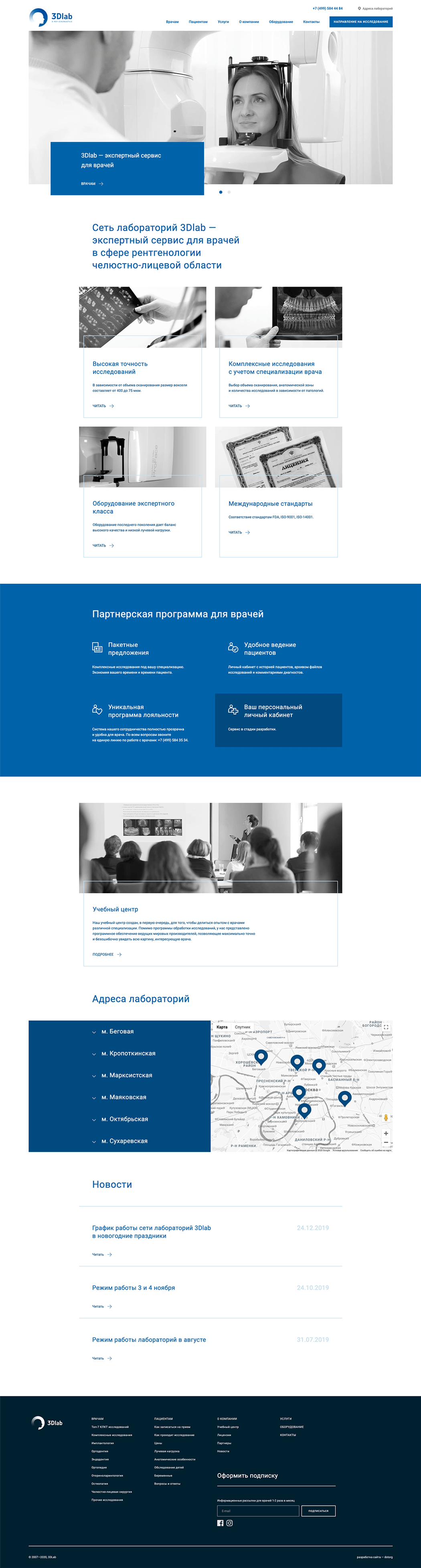 Сеть лабораторий «3Д Лаб» — один из старейших клиентов агентства, с которым мы работаем с 2009 года. Это уже третий апдейт сайта, который мы делаем в рамках коррекции позиционирования компании.