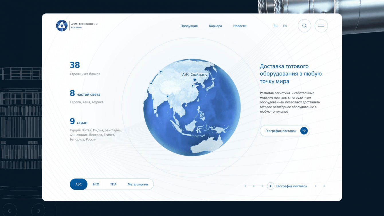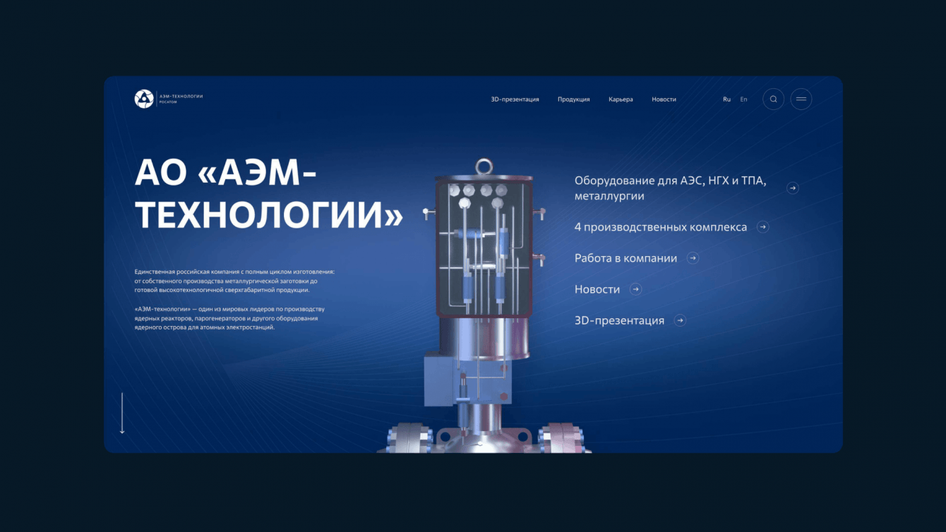 Целевая аудитория проекта — российские и иностранные профильные специалисты, которые хорошо осведомлены в тематике. Учитывая это и имиджево-информационную направленность сайта, команда проекта решила сделать основной точкой входа интерактивную 3D-презентацию, в которой наглядно представлены основные продукты компании — оборудование для АЭС, нефтегазохимии, теплоэнергетики и металлургии.