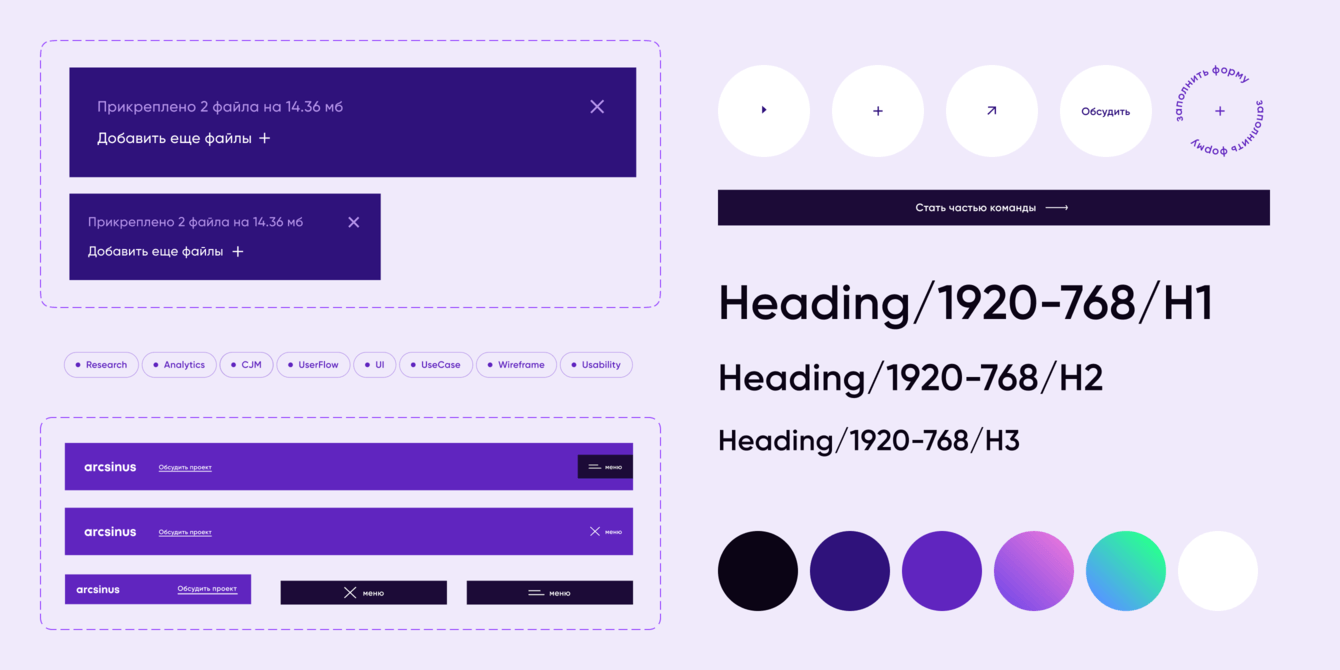 Параллельно с сайтом разработали дизайн-систему, которая помогает поддерживать единый стиль и регламентирует правила использования элементов.