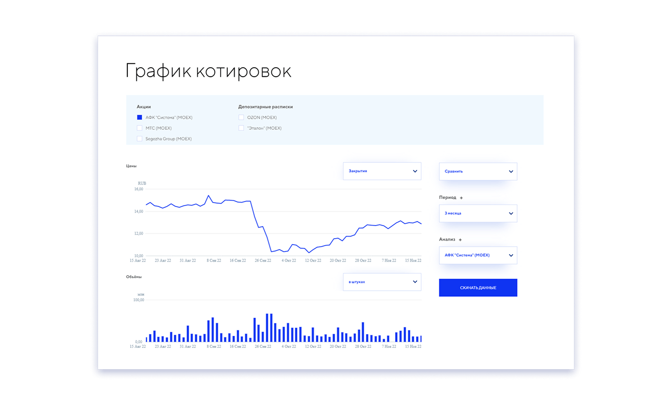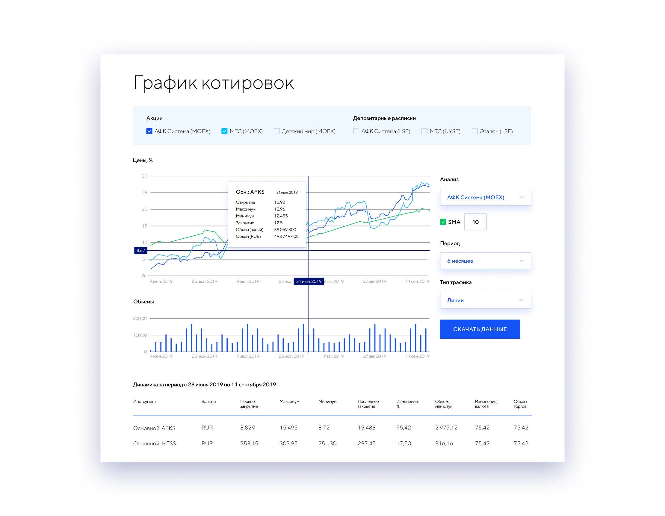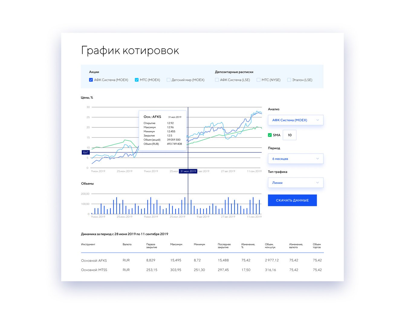 Разработали лаконичный чистый дизайн финансовых графиков с гибкими настройками.