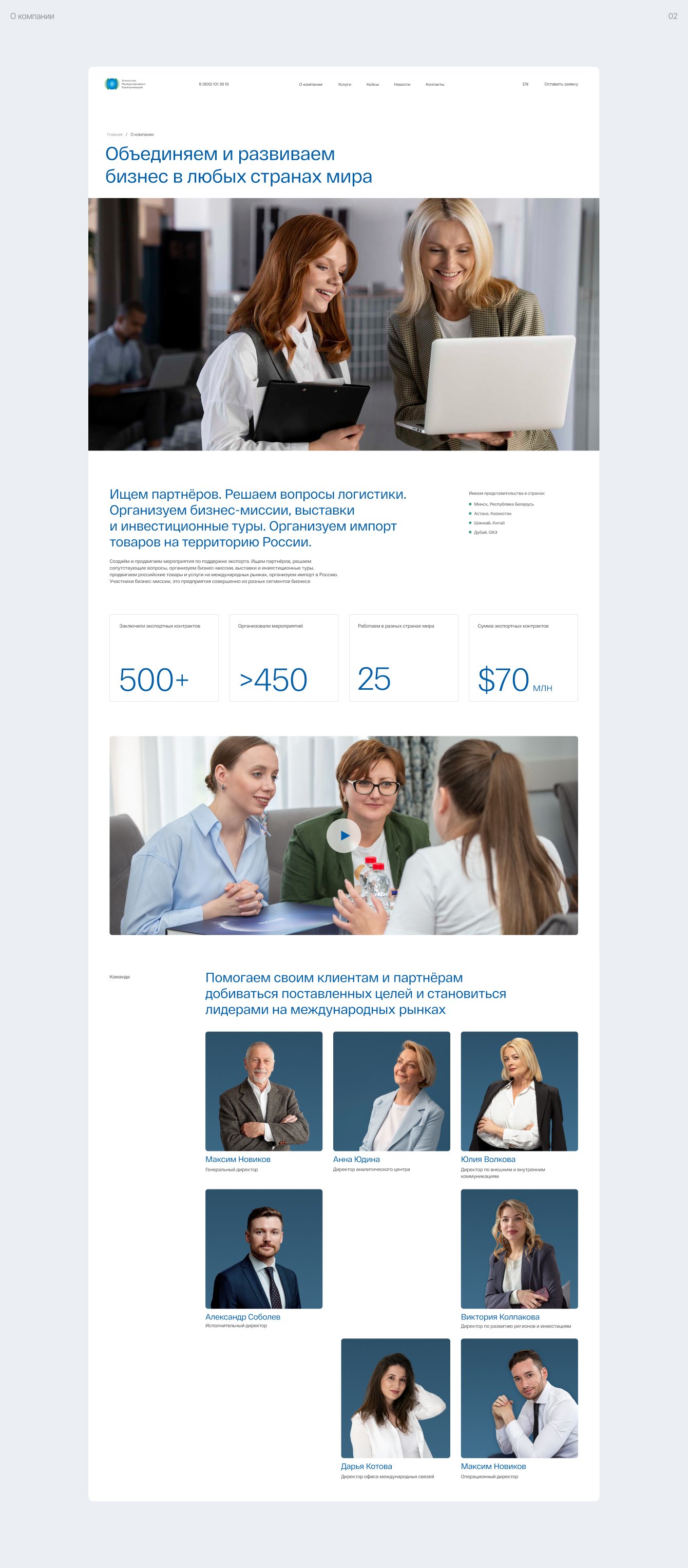 Сайт для АМК транслирует образ современного и открытого для общения бренда, создает возможность для коммуникации между потенциальными партнерами международного бизнеса.