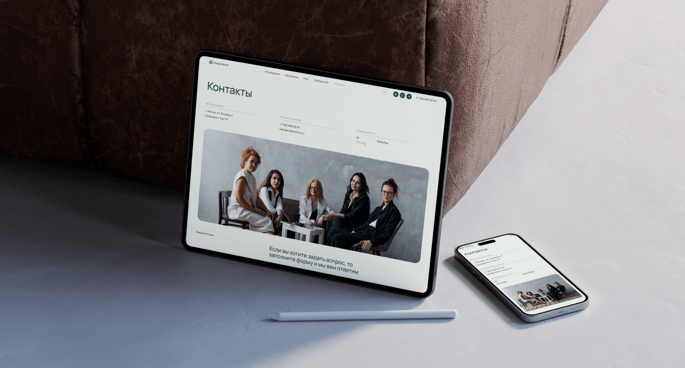 Дизайн сайта передает характер компании через тщательно подобранные цвета, типографику и графику, делая бренд узнаваемым и запоминающимся.