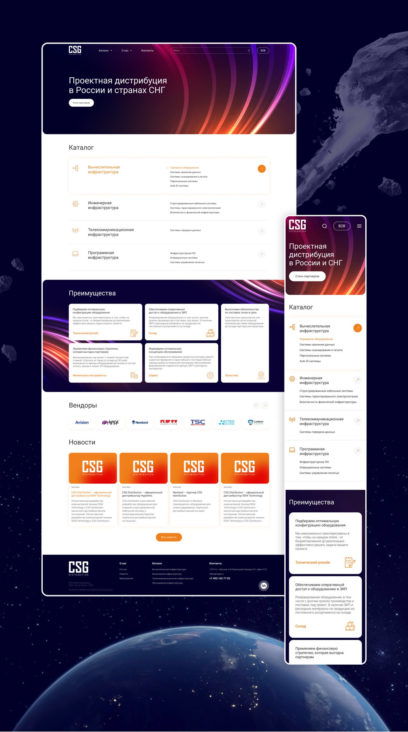Требуется полное обновление текущего сайта компании «CSG distribution», как с точки зрения информационной архитектуры, так и общего визуального стиля.