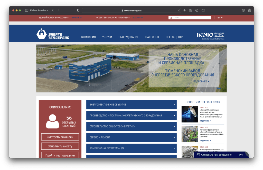 Для группы компаний «ЭнергоТехСервис» наше агентство разработало новый корпоративный сайт на платформе 1С-Битрикс с индивидуальным дизайном. Основная концепция дизайна была разработана и предоставлена заказчиком, наши специалисты воплотили ее в макетах, добавили современных технологий и интегрировали на платформу 1С-Битрикс. В результате получился динамичный и современный сайт, отлично подчеркивающий ключевые особенности, инновационность и масштабы бизнеса заказчика.