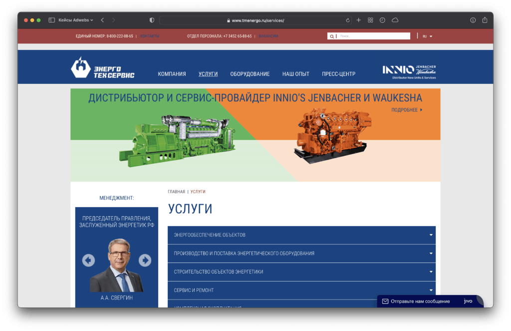 Для группы компаний «ЭнергоТехСервис» наше агентство разработало новый корпоративный сайт на платформе 1С-Битрикс с индивидуальным дизайном. Основная концепция дизайна была разработана и предоставлена заказчиком, наши специалисты воплотили ее в макетах, добавили современных технологий и интегрировали на платформу 1С-Битрикс. В результате получился динамичный и современный сайт, отлично подчеркивающий ключевые особенности, инновационность и масштабы бизнеса заказчика.