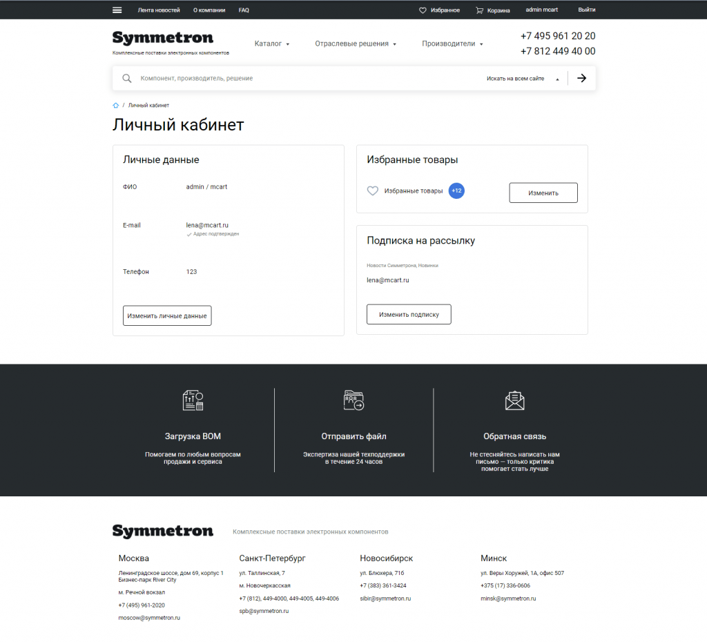 Весной 2018 года Симметрон обратился в Эм Си Арт с задачей разработки нового веб-сайта группы компаний на базе 1С-Битрикс. Целью проекта являлось увеличение количества интернет-заказов, а также повышение узнаваемости бренда Симметрон, лучшее информирование потенциальных покупателей о товарах и услугах компании, внедрение инструментов, облегчающих взаимодействие с ключевыми клиентами. Проект инициирован в рамках комплексной стратегии развития ecommerce-направления группы компаний.